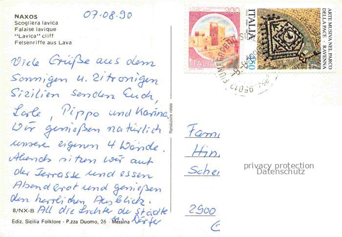 74156059 old postcard Naxos Giardini Sicilia IT Scogliera lavica Felsenriffe aus Lava postalisch gelaufen Erhaltung siehe scans [FriedD77] KatCode: 11240