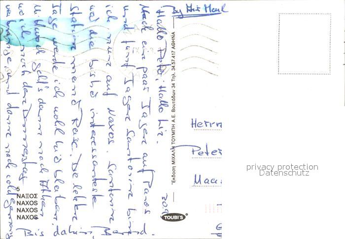 old postcard Naxos Hafen Schiff Tempel Ruine Antike postalisch gelaufen Erhaltung siehe scans
