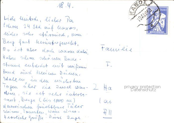 alte Postkarte Naxos Panorama postalisch gelaufen Erhaltung siehe scans
