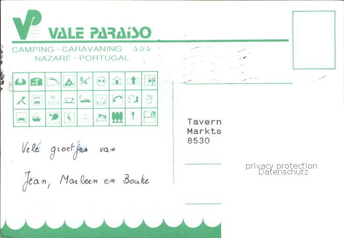 old postcard Nazare Portugal Camping Caravaning Vale Paraiso Swimming Pool postalisch gelaufen Erhaltung siehe scans