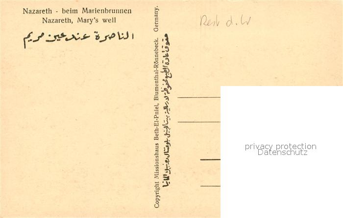 Nazareth Israel Marienbrunnen Mary’s well postalisch nicht gelaufen Erhaltung siehe scans [FriedD77]
