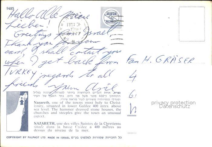 old postcard Nazareth Israel Teilansicht postalisch gelaufen Erhaltung siehe scans