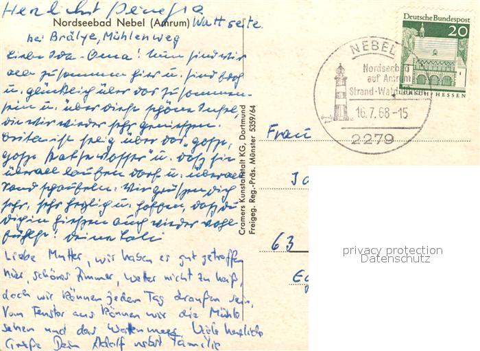 73160880 alte Postkarte Nebel Amrum Fliegeraufnahme postalisch gelaufen Erhaltung siehe scans [WerneD78] KatCode: 11110001054085