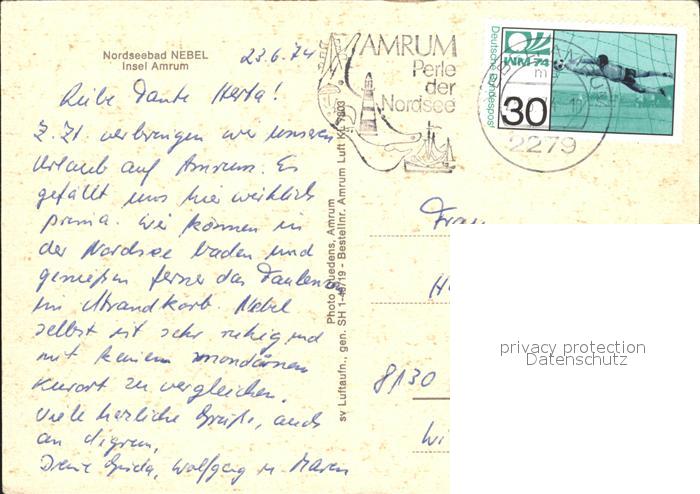 72107236 alte Postkarte Nebel Amrum Fliegeraufnahme postalisch gelaufen Erhaltung siehe scans KatCode: 11110001054085