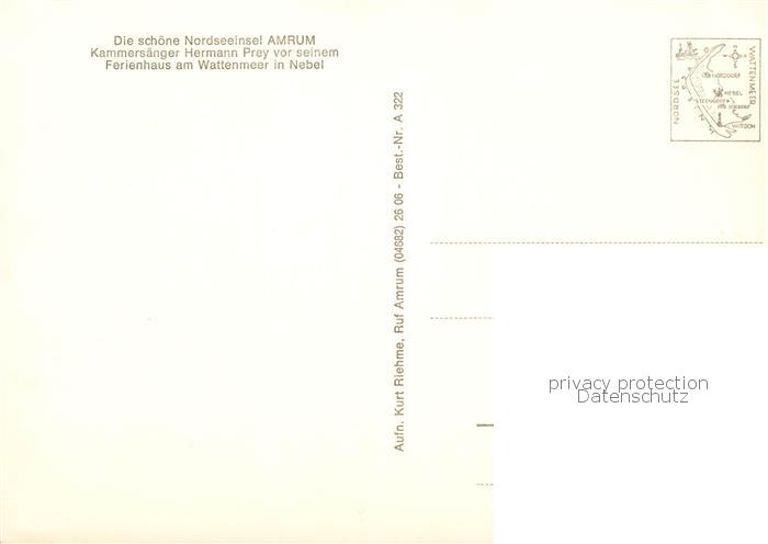 73865481 Nebel Amrum Kammersaenger Hermann Prey vor seinem Ferienhaus am Wattenmeer postalisch nicht gelaufen Erhaltung siehe scans [FriedD77] KatCode: 11110001054085