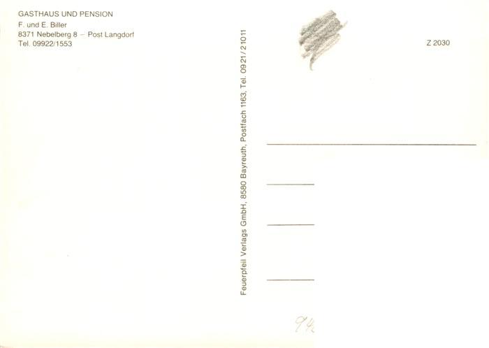 73883195 Nebelberg Langdorf Gasthaus Pension Biller Gastraeume postalisch nicht gelaufen Erhaltung siehe scans [FriedD77] KatCode: 11110009276129