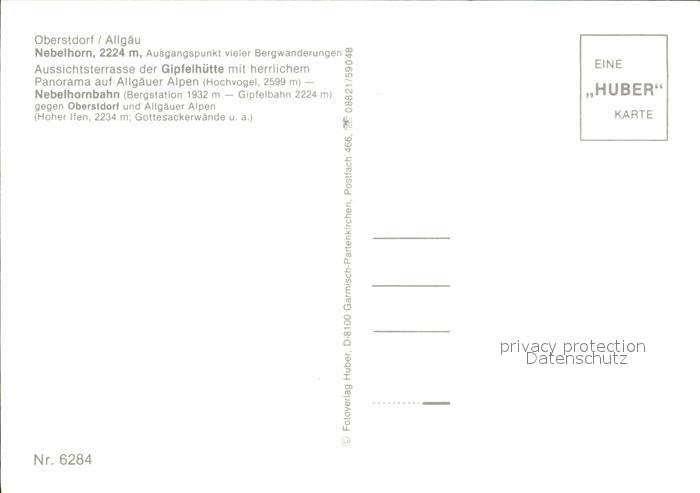 72528469 Nebelhorn Aussichtsterrasse der Gipfelhuette Panorama Allgaeuer Alpen Bergbahn Huber Karte Nr 6284 postalisch nicht gelaufen Erhaltung siehe scans KatCode: 11110009780133