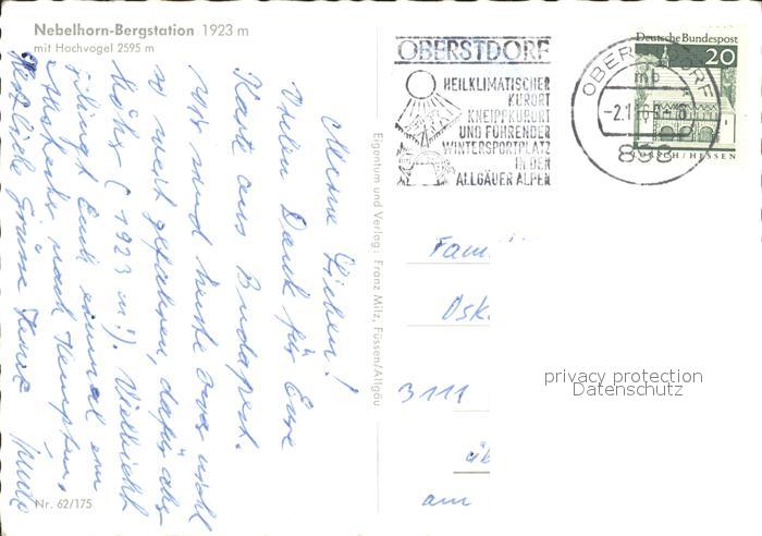 72059021 alte Postkarte Nebelhorn Bergstation Hochvogel postalisch gelaufen Erhaltung siehe scans KatCode: 11110009780133