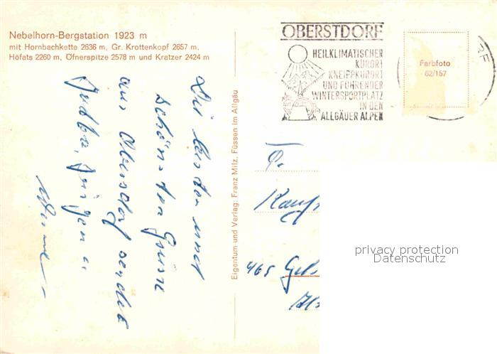 72867457 alte Postkarte Nebelhorn Bergstation mit Hornbachkette Kratzer Krottenkopf postalisch gelaufen Erhaltung siehe scans [LiesaD40] KatCode: 11110009780133