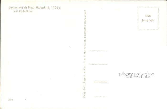 72148821 Nebelhorn Bergunterkunftshaus Hoefatsblick postalisch nicht gelaufen Erhaltung siehe scans KatCode: 11110009780133