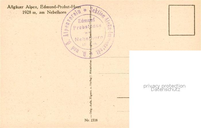 73624701 Nebelhorn Edmund Probst Haus postalisch nicht gelaufen Erhaltung siehe scans [LiesaD40] KatCode: 11110009780133
