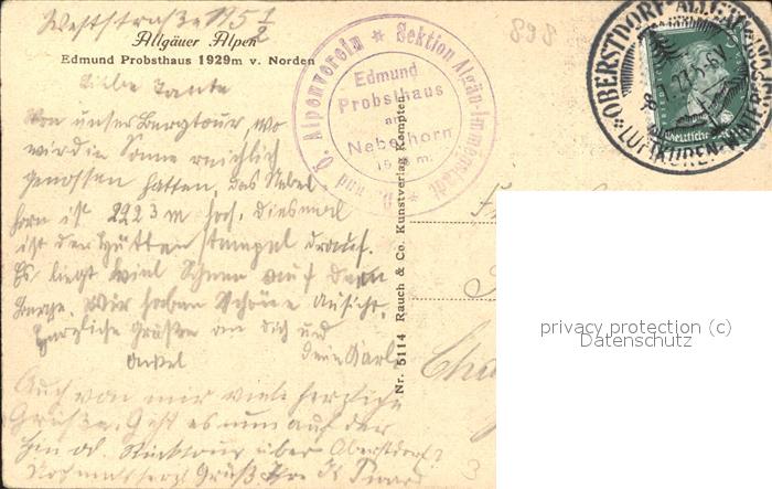 71525536 alte Postkarte Nebelhorn Edmund Probst Haus postalisch gelaufen Erhaltung siehe scans KatCode: 11110009780133