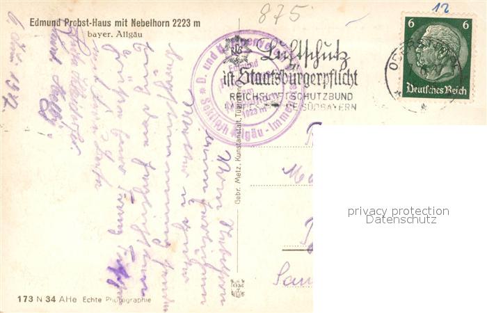 73570921 alte Postkarte Nebelhorn Edmund Probst Haus Allgaeuer Alpen postalisch gelaufen Erhaltung siehe scans [FriedD77] KatCode: 11110009780133