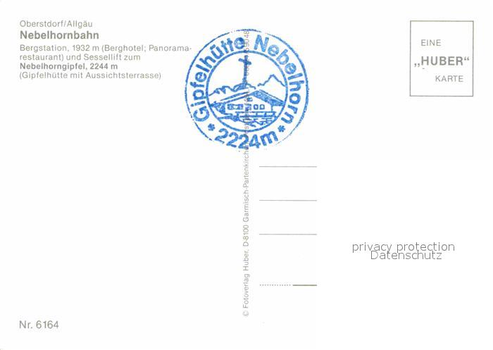 72644026 Nebelhorn Gipfel Bergstation Nebelhornbahn Allgaeuer Alpen Huber Karte Nr 6164 postalisch nicht gelaufen Erhaltung siehe scans [FriedD77] KatCode: 11110009780133