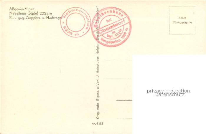 73332353 Nebelhorn Gipfel mit Zugspitze und Hochvogel postalisch nicht gelaufen Erhaltung siehe scans [WerneD78] KatCode: 11110009780133