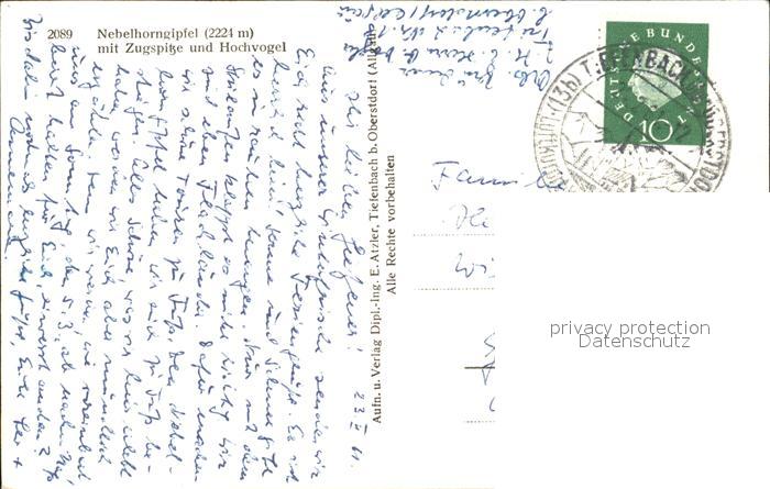 72392816 alte Postkarte Nebelhorn Gipfel mit Zugspitze und Hochvogel postalisch gelaufen Erhaltung siehe scans KatCode: 11110009780133
