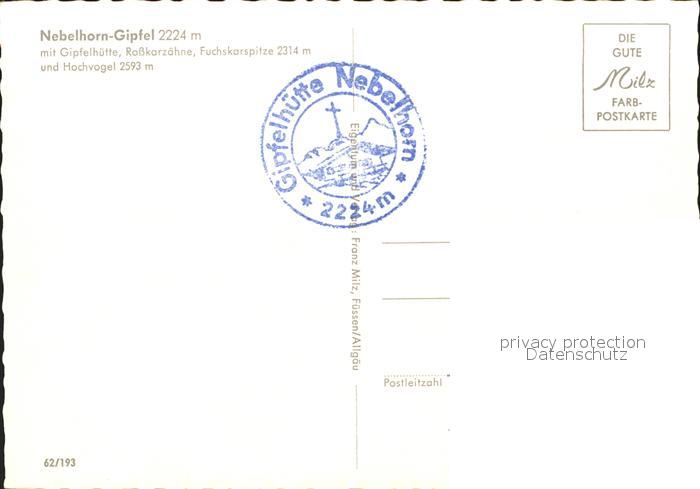 71929183 Nebelhorn Gipfelhuette postalisch nicht gelaufen Erhaltung siehe scans KatCode: 11110009780133