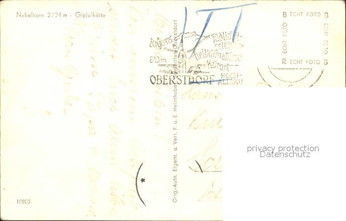 72081785 alte Postkarte Nebelhorn Gipfelhuette Alpenpanorama postalisch gelaufen Erhaltung siehe scans KatCode: 11110009780133