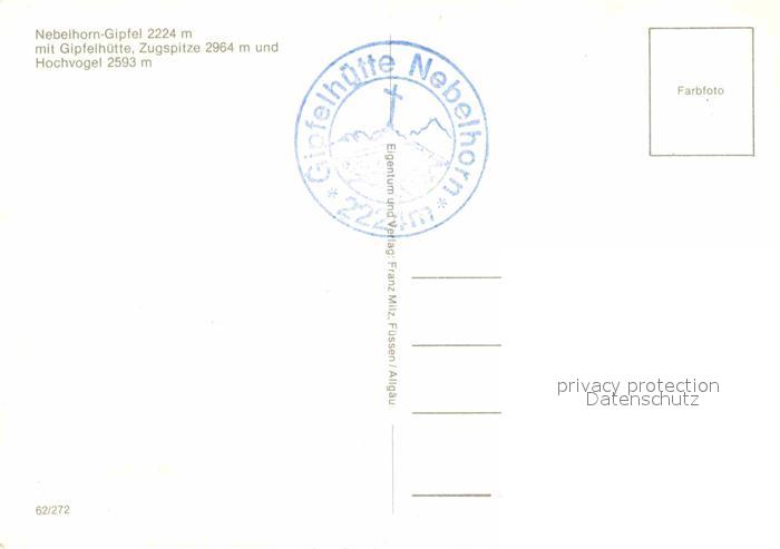 72896833 Nebelhorn Gipfelhuette Hochvogel postalisch nicht gelaufen Erhaltung siehe scans [KathaD81] KatCode: 11110009780133