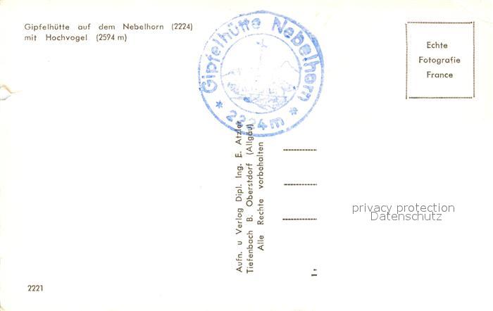 73332563 Nebelhorn Gipfelhuette mit Hochvogel Fernsicht Alpenpanorama postalisch nicht gelaufen Erhaltung siehe scans [FriedD77] KatCode: 11110009780133