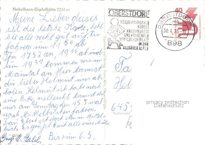 72433600 alte Postkarte Nebelhorn Gipfelhuette Terrasse Allgaeuer Alpenblick postalisch gelaufen Erhaltung siehe scans KatCode: 11110009780133