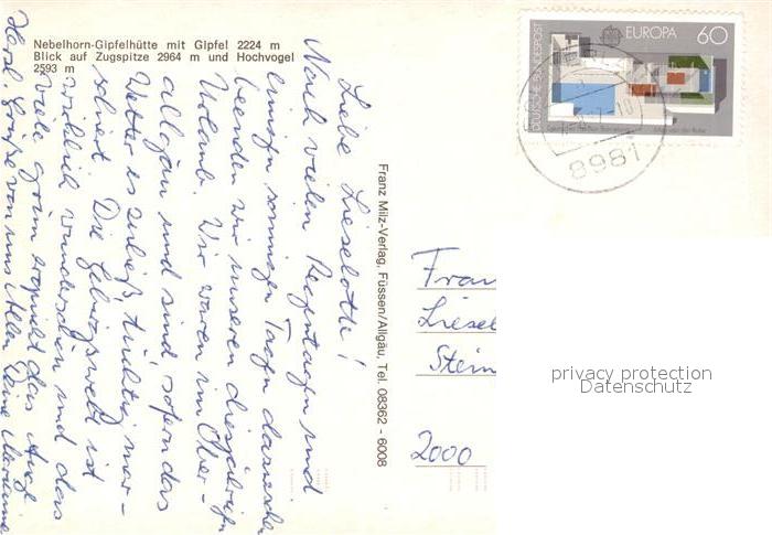 73131541 alte Postkarte Nebelhorn Gipfelhuette Zugspitze Hochvogel postalisch gelaufen Erhaltung siehe scans [NatalD47] KatCode: 11110009780133
