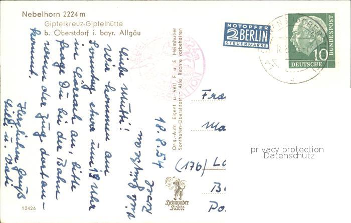 72138906 alte Postkarte Nebelhorn Gipfelkreuz Gipfelhuette postalisch gelaufen KatCode: 11110009780133