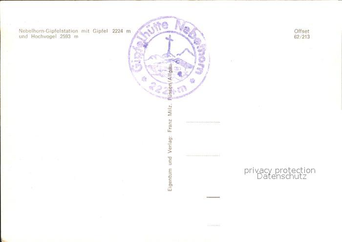 72309295 Nebelhorn Gipfelstation Gipfel Hochvogel postalisch nicht gelaufen Erhaltung siehe scans KatCode: 11110009780133