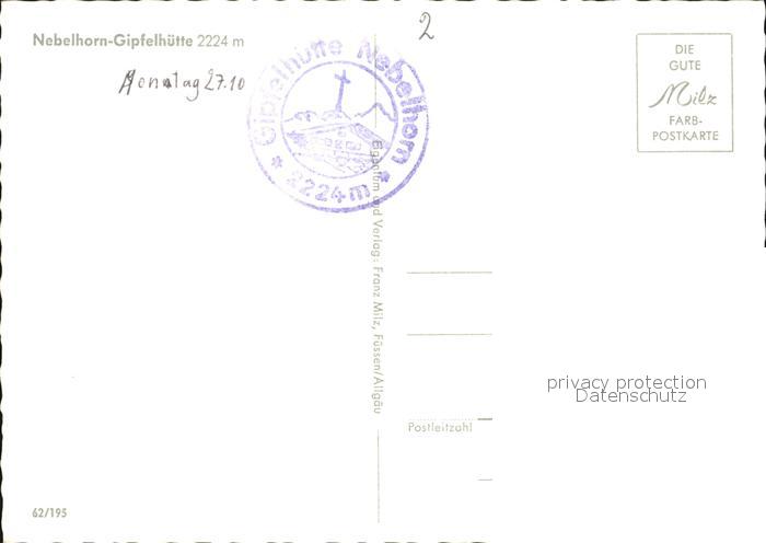 72479497 Nebelhorn Hornbachkette Wasserfallkarspitze Gipfelhuette postalisch nicht gelaufen Erhaltung siehe scans KatCode: 11110009780133