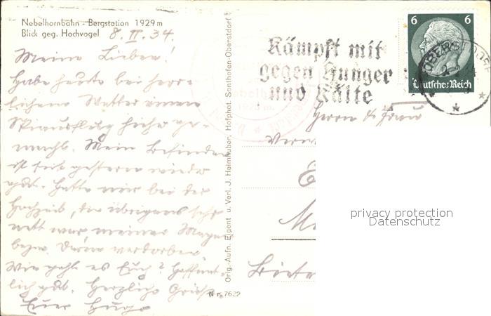 72278091 alte Postkarte Nebelhornbahn Bergstation postalisch gelaufen Erhaltung siehe scans KatCode: 11110009780133