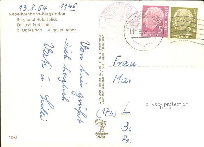72141492 alte Postkarte Nebelhornbahn Bergstation Berghotel Hoefatsblick Edmund Probst Haus Allgaeuer Alpen postalisch gelaufen Erhaltung siehe scans KatCode: 11110009780133