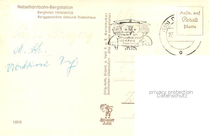 73297343 alte Postkarte Nebelhornbahn Bergstation mit Berghotel Hoefatsblick und Berggaststaette Edmund Probst Haus postalisch gelaufen Erhaltung siehe scans [WerneD78] KatCode: 11110009780133