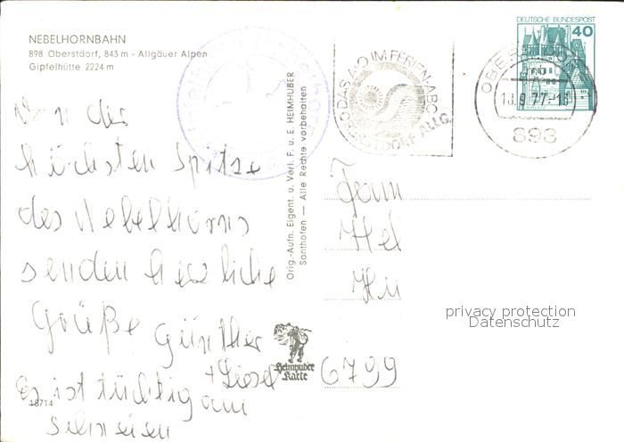 71934448 alte Postkarte Nebelhornbahn Gipfelhuette Zugspitze Hochvogel postalisch gelaufen Erhaltung siehe scans KatCode: 11110009780133