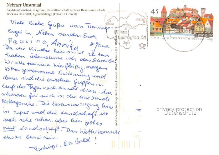 73840371 alte Postkarte Nebra Unstrut Nebraer Unstruttal Teilansichten postalisch gelaufen Erhaltung siehe scans [FriedD77] KatCode: 11110015084360
