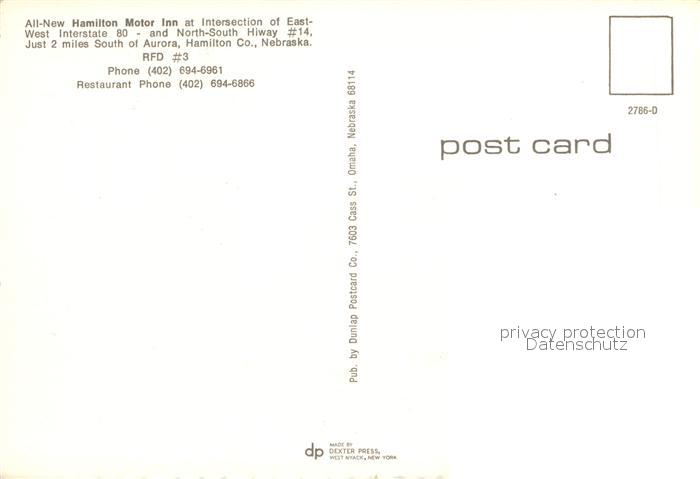 12956138 Nebraska Hamilton Motor Inn postalisch nicht gelaufen Erhaltung siehe scans [NatalD47] KatCode: 14140160000000