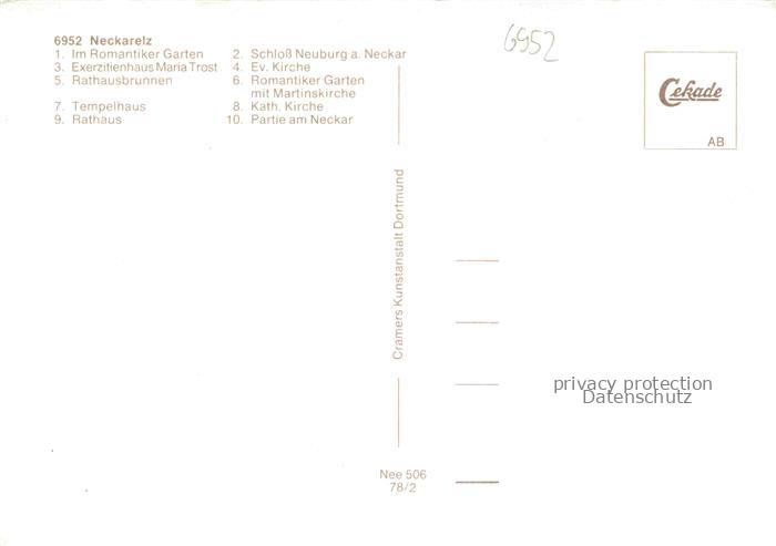 74048366 Neckarelz Garten Exerzitienhaus Maria Trost Rathaus Brunnen Tempelhaus Schloss Kirche Partie am Neckar postalisch nicht gelaufen Erhaltung siehe scans [FriedD77] KatCode: 11110008225058