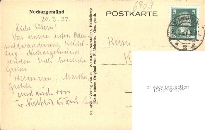 31730943 alte Postkarte Neckargemuend postalisch gelaufen KatCode: 11110008226056