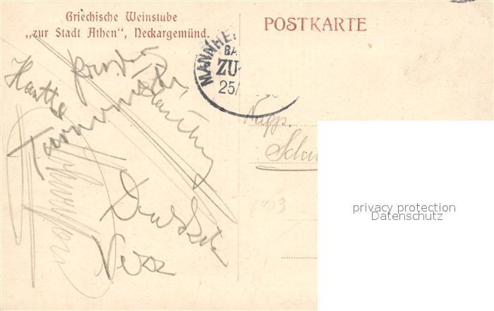 43017563 alte Postkarte Neckargemuend Blick auf den Dilsberg von der Griechischen Weinstube postalisch gelaufen Bahnpost Erhaltung siehe scans [FriedD77] KatCode: 11110008226056