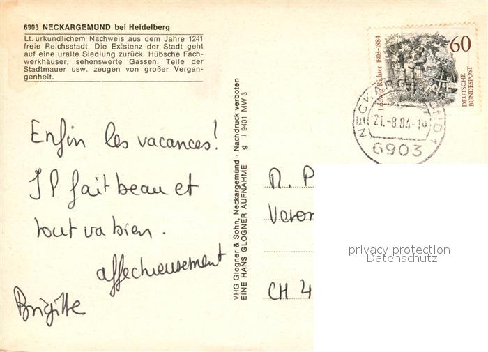 73306301 alte Postkarte Neckargemuend Fachwerkhaeusr Kirche postalisch gelaufen Erhaltung siehe scans [KathaD81] KatCode: 11110008226056