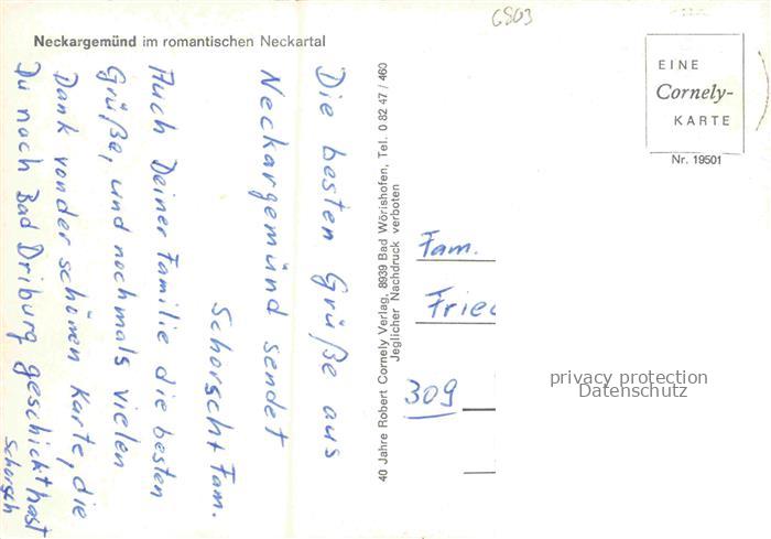 74048660 alte Postkarte Neckargemuend Fliegeraufnahme postalisch gelaufen Erhaltung siehe scans [WerneD78] KatCode: 11110008226056