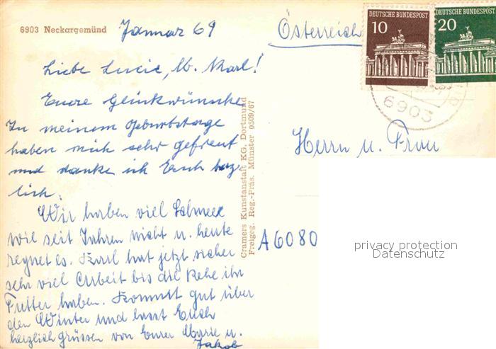 72872273 alte Postkarte Neckargemuend Fliegeraufnahme postalisch gelaufen Erhaltung siehe scans [FriedD77] KatCode: 11110008226056