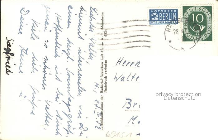 31729837 alte Postkarte Neckargemuend Fliegeraufnahme Blick auf das Strandbad Dilsberg postalisch gelaufen Erhaltung siehe scans KatCode: 11110008226056