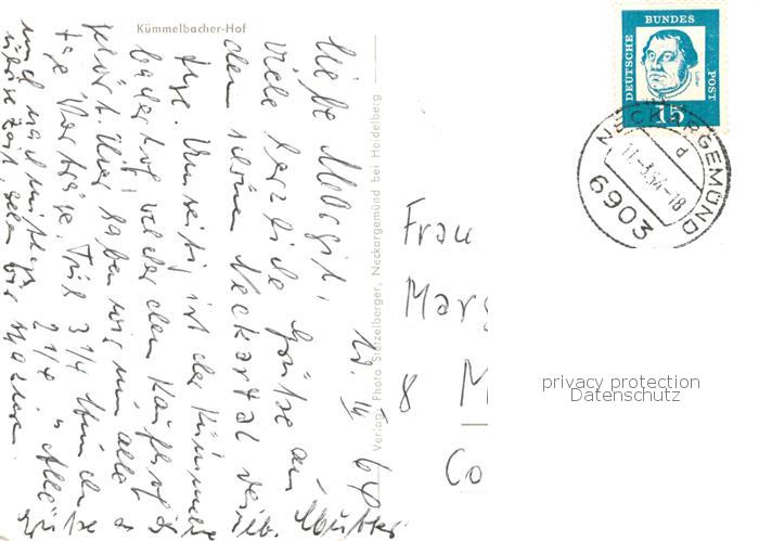 73804438 alte Postkarte Neckargemuend Kuemmelbacher Hof postalisch gelaufen Erhaltung siehe scans [WerneD78] KatCode: 11110008226056