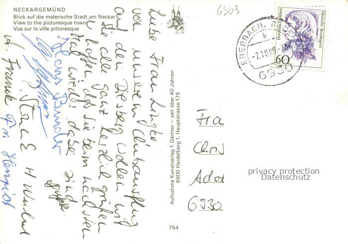 74048900 alte Postkarte Neckargemuend Neckarpartie Stadtblick postalisch gelaufen Erhaltung siehe scans [WerneD78] KatCode: 11110008226056