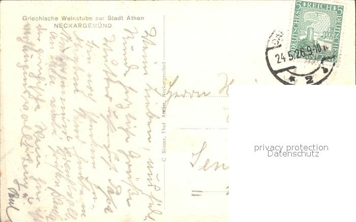 72093441 alte Postkarte Neckargemuend Terrasse Griechische Weinstube Blick auf den Dilsberg postalisch gelaufen Erhaltung siehe scans KatCode: 11110008226056