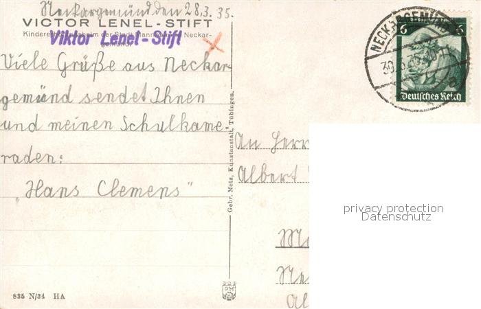 33623792 alte Postkarte Neckargemuend Victor-Lenel-Stift Kindererholungsheim postalisch gelaufen Erhaltung siehe scans [PaolaD17] KatCode: 11110008226056