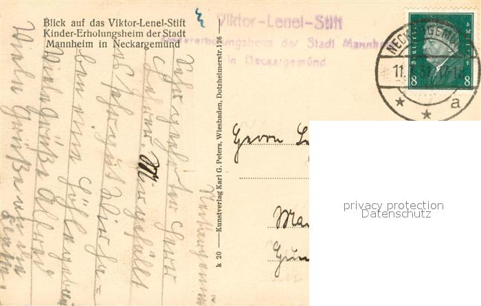 33623793 alte Postkarte Neckargemuend Viktor-Lenel-Stift Kindererholungsheim Stadt Mannheim postalisch gelaufen Erhaltung siehe scans [PaolaD17] KatCode: 11110008226056