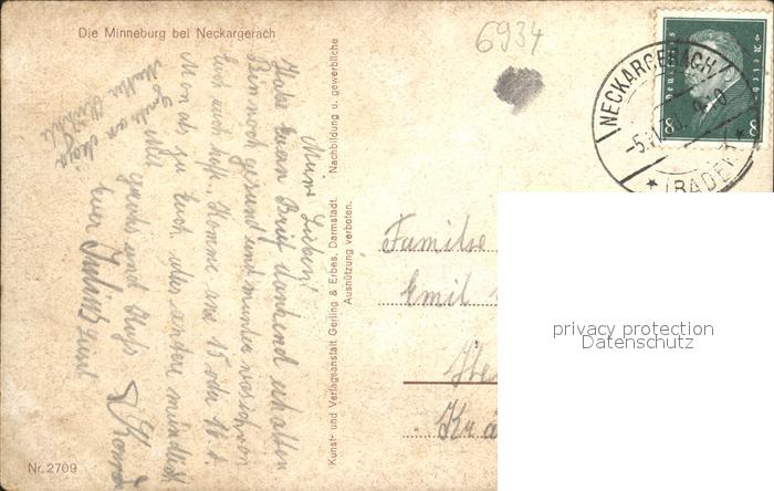 72093308 alte Postkarte Neckargerach Die Minneburg postalisch gelaufen Erhaltung siehe scans KatCode: 11110008225064