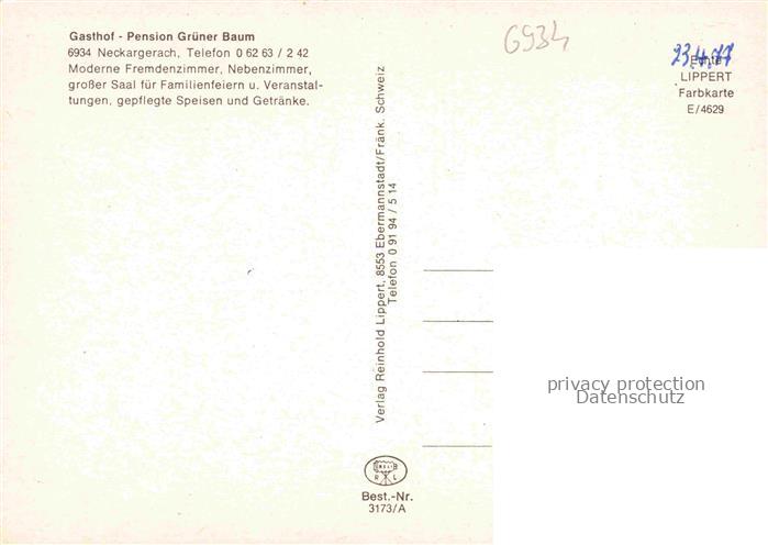 74047719 Neckargerach Gasthof Pension Gruener Baum Gastraum postalisch nicht gelaufen Erhaltung siehe scans [WerneD78] KatCode: 11110008225064