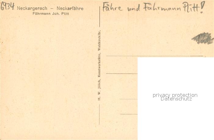 73748920 Neckargerach Neckarfaehre Kirche Faehrmann Joh Plitt postalisch nicht gelaufen Erhaltung siehe scans [WerneD78] KatCode: 11110008225064